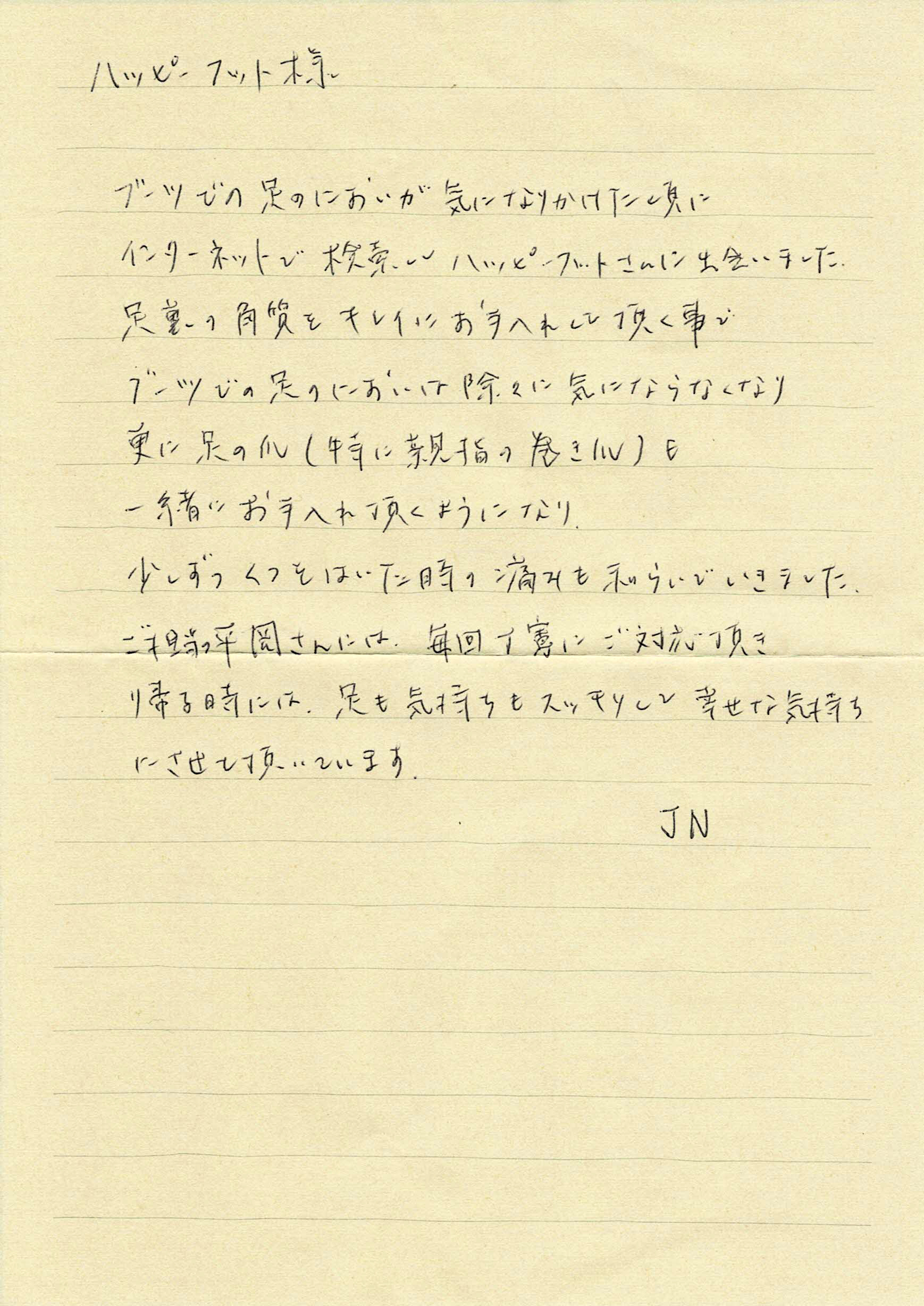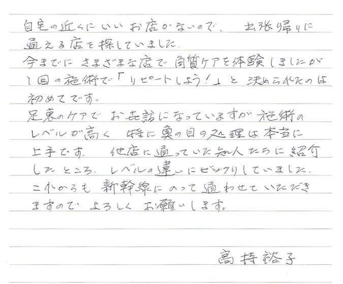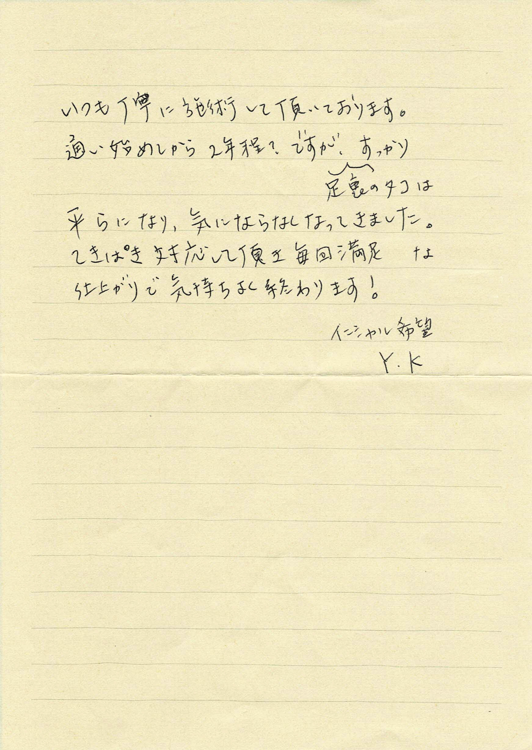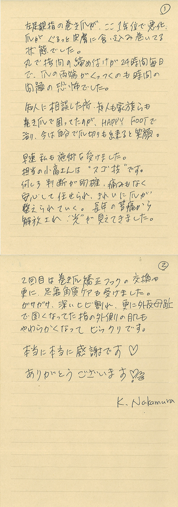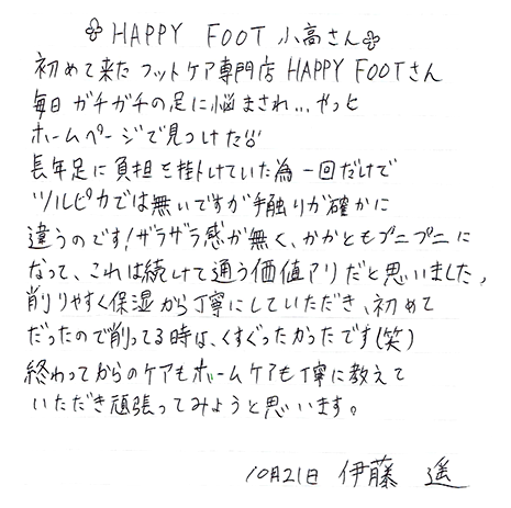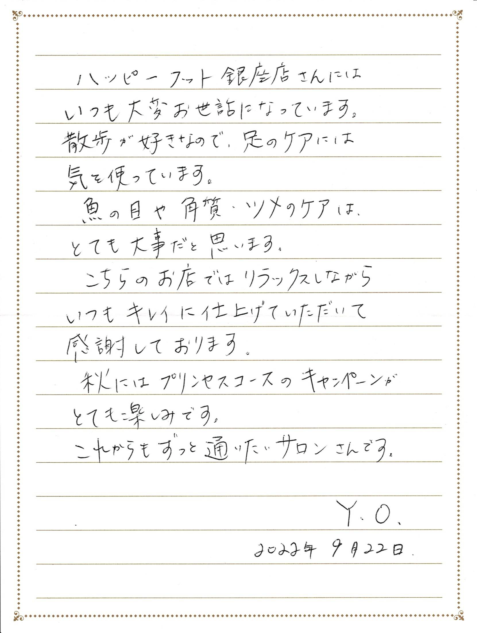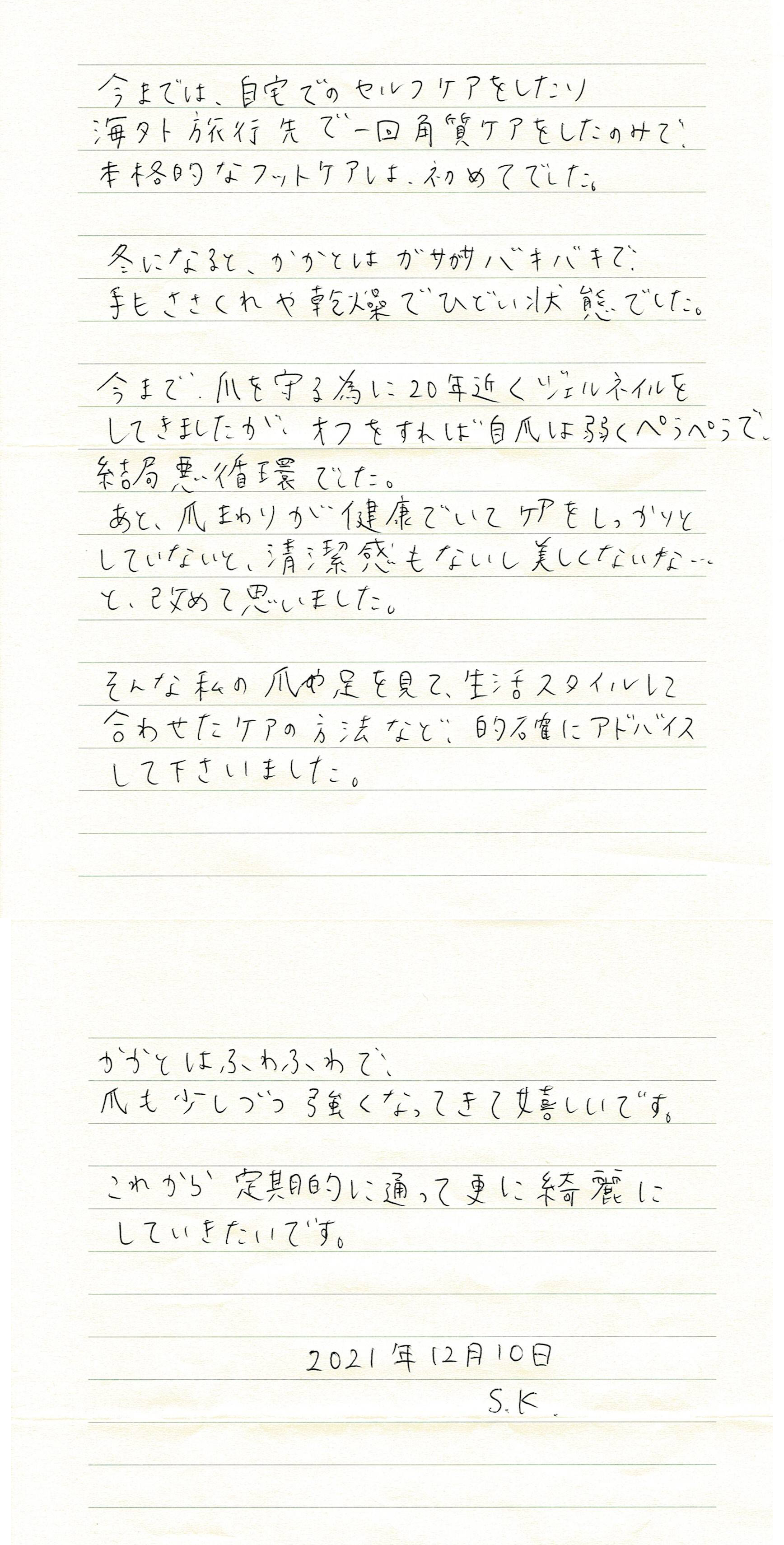 いつも丁寧にフットケアしてくださり、本当にありがとうございます。